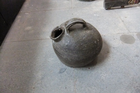 他说这是他外公用过的, 人走了,也没人收拾,现在根本也就不需要了.其中品相好的一把很不错的,外形弧线很饱满, 造型很古拙.一路上都是他找了一个破袋子提着.我拿回家,清洗过后,放在民俗杂件展示室的门角落,和一个小马桶为伴. 那个小马桶也是同学捐的.