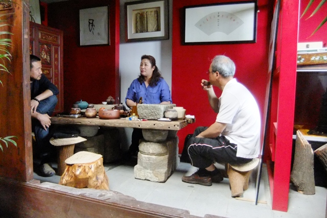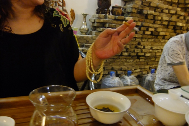 图中这枚茶盅是丁姐送给我的 。 素雅简洁。 其实丁“姐”比我小好多,她也常让我改口叫小丁,我还是很习惯叫她姐。因为在社交圈内,(姑且不说江湖上),她称得上是个“姐”。 丁姐的爷爷是解放前后上海南京路上稻香邨记掌柜。出生名门,所以在她身上没有小家子气。 我认识她没多久,是一位朋友介绍的,原因是,他觉得我们肯定会投缘。 她在石化城中也开有一茶室,来往客人很多,人气很旺,但据说还是亏的,我不奇怪。 几次交往之后,我了解了她一些经历,印象是:命途多舛。她开过酒店,赚钱了,后来又赔了,她现在还在用激素药,因为身体不好,曾经去美国医治,几乎没命。但你根本看不出来,因为你永远看不到她愁眉苦脸的样子。 在交流中,我得知她一生遇见过两个奇人,使她的人生观和人生发生了改变。 一次是在宜兴,那时28岁,遇到一位紫砂壶艺人,让她对壶产生了刻骨铭心的好感,甚至影响到生活态度,很多时候,特别是在烦闷的时候,她会独自坐在地板上,把所有的壶搬出来,一把一把地把玩,一直到深夜也不会疲倦。还有一次是在福建山上,遇到一位师太,是在她遭受挫折,又得了恶疾之后,极度沮丧,万念俱灰时,她在山上呆了一段时间,后来,变了一个人。 像其他茶艺师一样,她的茶艺功夫也是很深的,但是所不同的是,人家壶里泡的是茶,她的壶里泡出来的也是茶,但品出来的是人生五味,即使是一杯开水,也是很耐品的。 不久前又有两个经历: 前些天,她发现自己的眉宇间有一道横纹,据说这不是好兆头,她到常去的那家美容院,请美容师推掉。那位美容师也许是新手,手脚粗劣了点,把她的鼻梁给推破了,皮开血流,破了相。美容店老板见状,惊恐万分。此时丁姐有两种处理办法,盛怒之下打个电话给她的高姐(蒙古族人,身高1.95米,运动员),她的盟姐,不需要一个钟点,美容院将就此原地消失,还得赔钱,少说二,三十万;还有一个途径,交给律师朋友,结果差不多,美容院将就此关门。但丁姐只是说了她几句,让医生朋友敷了药就算完事了,连医药费都没问人家要。她说:我一认真,他保证完蛋,算了。朋友们虽然有不平,也只好作罢。 后来有人说,这道眉间横纹来得突兀,这一起事故也许正是要她过这一关的。她的姿态让她消了灾。 还有一件事,一位内蒙的朋友的朋友,得了胃癌,已判定没治了。朋友找到她,她在美国时认识一位专家,可以一试,但费用吓人。可是经她和台湾友人联系,可以利用朋友的康复俱乐部与这位专家间的关系,约双方在台湾一见,这样费用就小很多。病人心态很复杂,开始是愿意的,但等到与专家约好时间,定好机票后,却又变卦了,把丁姐“顶在杠头上”。 最后,她决定自己去一趟台湾(那时她的鼻子上还在用药),跟对方打招呼,有损失就她来赔偿。内蒙那边病人有政府背景,当政府某领导闻讯,大为感动,说:丁姐,内蒙人民欠你了! 丁姐有一句网上签名:行到水穷处,坐看云起时 我一直在想找一种方式,能表达她的人格魅力,总是没有很好的机会,却在一次一起喝茶时,看到她一个很自然,却很能表现她的一个姿势:左手夹了一支香烟在冒烟,腕上绕了一串佛珠,右手在斟茶。我于是用快门记录了下来。
