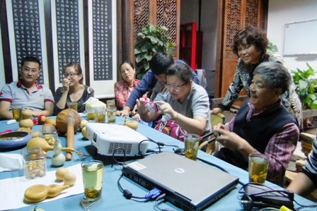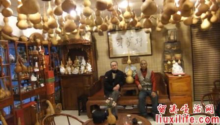 今天艾里克付来到山塘苑,来讲养生,带来很多葫芦,在听雨楼被文武先生看到了。
