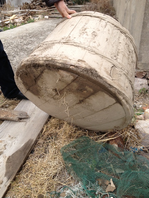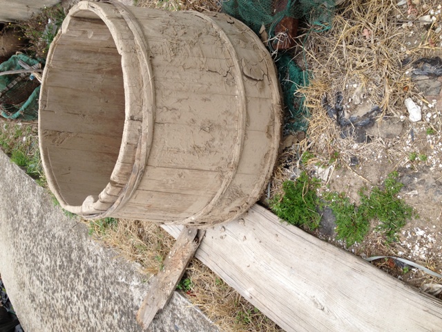2014春节。 一直想去看看晒盐和用到的工具,这次春节终于在朋友帮助下成行。在温州乐清一个叫龙泽岭的海边渔村看到了。 顺便在村里逛逛,看到了渔民在淘洗血蛤,渔民出示捞血蛤的工具。看到了晒盐工具,听渔民讲如何用鱼钩钓跳跳鱼。。。 在一户人家院子外面,看到这个木桶,初看每什么特别。主人见我很感兴趣,介绍说:这个桶是他们在海滩上落潮时,捡贝类海鲜时用的,可以在滩涂上拖行,底板做成微凸,这样拖的时候会很顺溜。