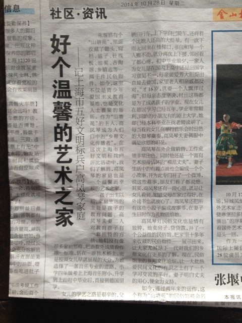 一周讯 〉镇团委假座本苑组织青年人才农业改革座谈会 〉《南方教育时报》采访并报导本苑 〉《新张堰》报再次报导本苑苑主家庭事迹 〉论坛《会刊》第一稿修改完成 〉百药园第二期规模种植项目开始洽谈 〉苑主踏访金山嘴龙泉港出海口 〉访客信息 /80年代张堰书画“四象限”再聚山塘苑 /金山收藏家缪时方,凌雅千来访 /内蒙包头客人慕名来访