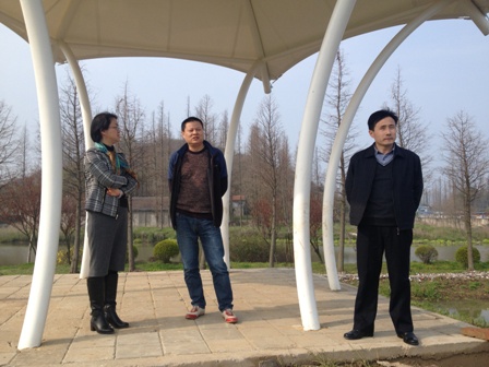 >3月28日下午,镇党委顾美萍副书记,农业旅游副镇长金志兵访建设中的百草园