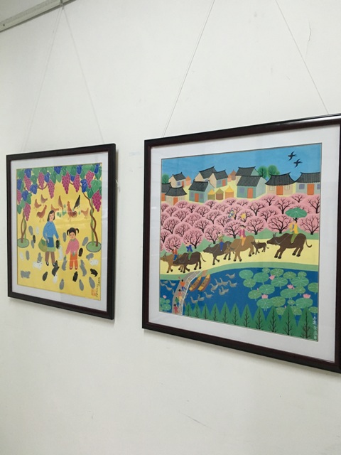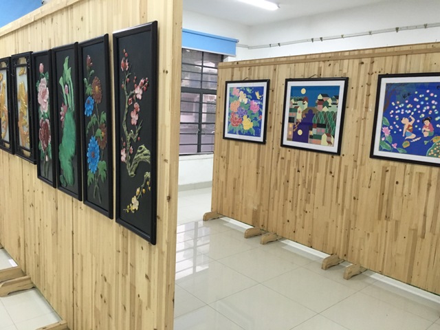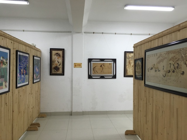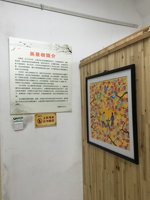 民间艺人,本研究会会员,本镇秦山(河泾村)吴景权画展(农民画,烫画,堆塑画)在張堰文体中心展出。