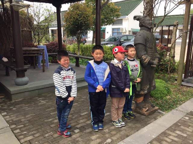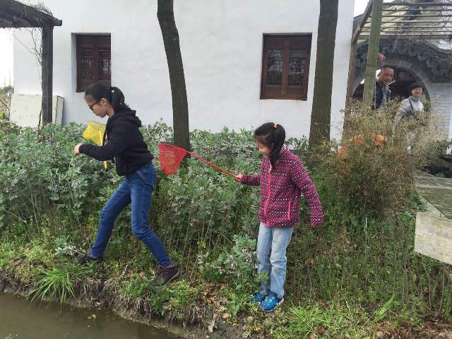 一批来自市区的客人,是到百草园游园做亲子活动的,在山塘苑赏桃花。
