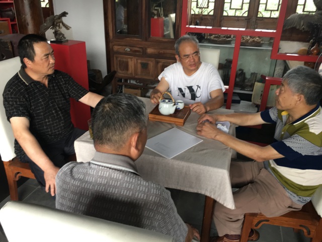 7月10日,分别在秦望山百草园,山塘苑,会长邀请部分会员,谈论由会长提出的,每个会员,应就个人知识背景和手头可以得到的材料,就一,二个文史课题进行专题研究的落实计划。 其中: 〉〉和会员姚连根老师,谈到,1/姚氏宗谱和历史人物,2/顾观光故居和顾墓。 3/金山农民画的创始人考等