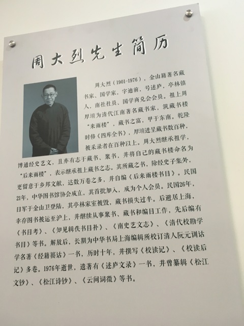 张老师刚从香港中文大学讲学回来,高会长听张老师介绍了古籍部近期的几个项目,参观了新建的亭林籍人士,民国藏书家,南社社员周大烈先生藏书室。