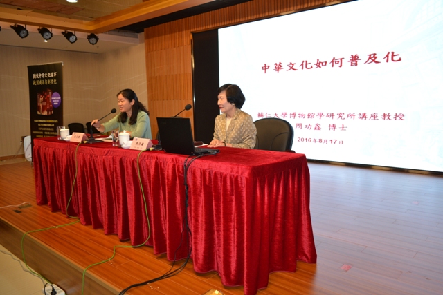 文广局陆颖局长主持,周功鑫博士(右)演讲