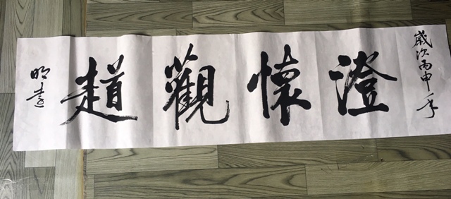 2016年的最后一天,同事老友向华和他姐带来一位易学老师,介绍说:是明代开过元勋刘伯温后代。一见面觉得很有 仙气。刘老师在风水学方面很有研究,他出示了他在写的一本书。据向华说:刘老师是看到我在向华家的一幅字后, 想来见我的 ,当然,向华说了不少关于山塘苑的故事。那幅字是我10多年前送向华 的 :“有之则乐之”。刘老师 看后说:这位先生应该有一位女儿。大家很惊诧。于是觉得他很厉害。刘老师在我听雨楼留下了一幅字:行书, 淳怀观道 。“道”字写成“走”旁,他说了原因,大意是:人需在行走中思考,才会有得。 向华还给我带来几件他老家东阳的老物件。