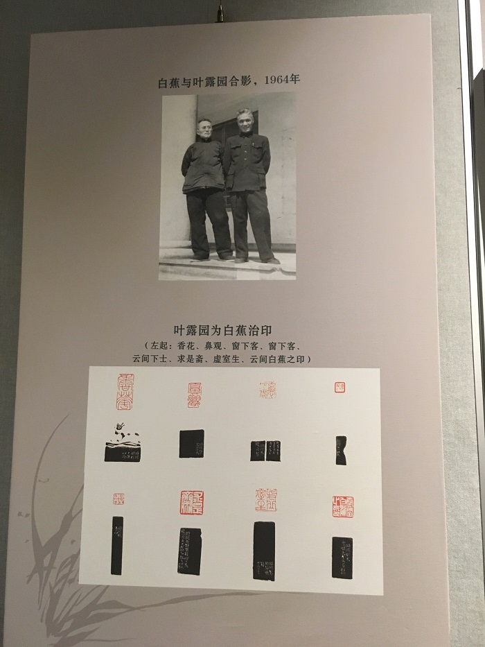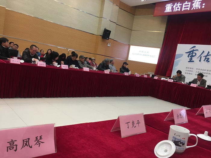 今年是著名书画篆刻家,张堰籍人白蕉先生110周年诞辰 这次纪念活动包含两个环节 在金山图书馆一楼,由政府主办举行了110周年白蕉作品和生平纪念展,有不少 白蕉遗物和遗作展示;下午会场转到白蕉祖籍地张堰镇,也是有区和地方政府 主办,相关专家学者,白蕉亲属,文史研究部门,包括山塘文史研究会等,出席 名为“重估白蕉-110周年纪念活动” 在很多学者嘉宾发言后,90多岁的张堰籍老者姚昆田老师要求发言,他叙述了 孩提时期和白蕉的交往以及两家的关系等,引起大家很大兴趣。 白蕉的艺术成就和生平,国内目前很少听到有专门研究的 ,也是一个缺憾。