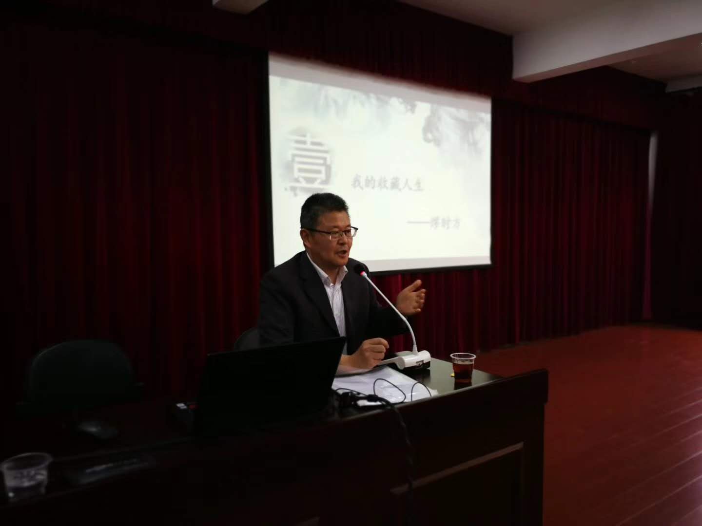 报告开始前,会员胡学军就他的文化配送做了交流发言,分享他的收藏和配送项目。