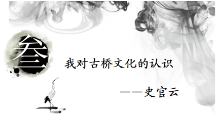 第三个报告是史官云老师的《我对古桥文化的认识》。他通过一张张PPT,讲述他对.桥的认识,从对桥的认识、桥的起源、桥形结构、特殊意义的桥等十个方面,告诉我们:对古桥保护任重道远。