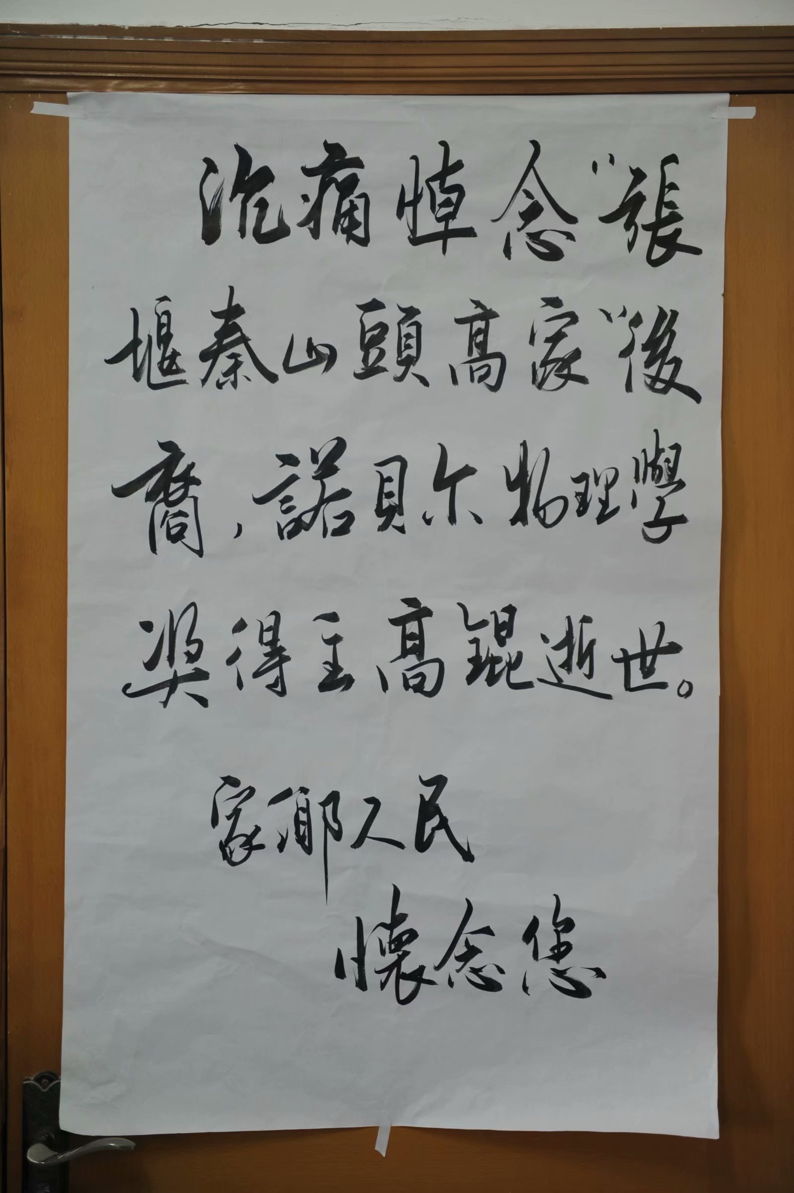 上图:姚昆渝先生携带来家乡人民悼念高锟去世的条幅