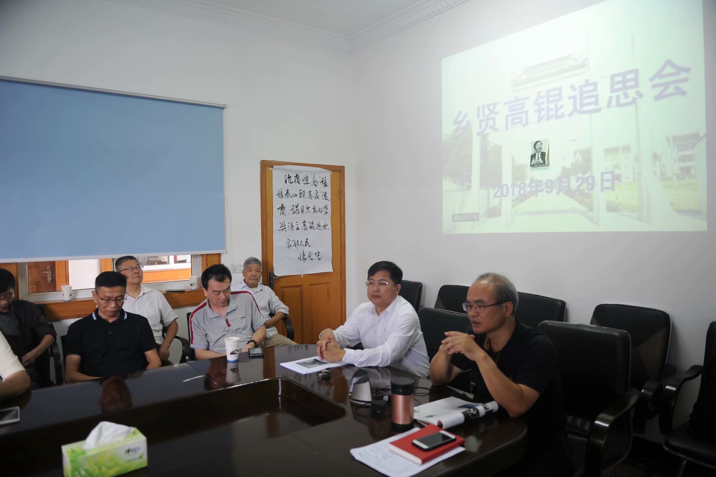 “乡贤高锟追思会”今天下午在金山张堰高锟家乡举行(20180929丁君彦) 今天下午,由上海山塘乡邦文史研究会、上海顾野王研究院发起的“乡贤高锟追思会”在上海金山张堰秦望村举行,以纪念和缅怀于本月23日在香港因病去世的“光纤之父”、诺贝尔物理学奖获得者高锟先生,高锟祖籍上海金山张堰,父亲高君湘律师,祖父高吹万近代诗人,藏书家,南社社员。追思会有上海山塘乡邦文史研究会高凤琴会长主持。追思会上,蒋志明先生追溯了高锟不平凡和光辉的一生,姚昆渝先生展示并叙述他收藏的高锟先生的相片、资料和相关内容的报纸、杂志和明信片,刘本新先生建议金山民间文化研究会编撰《高锟故事》和《光纤科普》两本书,陆治中先生回忆28年前在张堰乡撰写“香港中文大学校长-高锟”一文的经历,丁克平先生表示金山的名人资源我们要利用好,朱晓讲述廊下朱家和张堰高家两个大家族交往的动人故事,梁向东先生念读黄建平专为追思会而作“悼念高锟”诗歌一首,并表示我们民间文化研究以此为契机要更上一层楼,追思会开始大家默哀三分钟,向高锟先生的不幸去世表示哀悼,会中高凤琴先生还电话连线姚昆田先生和高渠先生,通过两位族亲亲历和接触高锟的故事,一道表达对高锟先生的纪念。金山东林文史研究会、金山卫康城文史研究会、枫泾文史研究会和张堰民间代表等共20余人参加追思会。