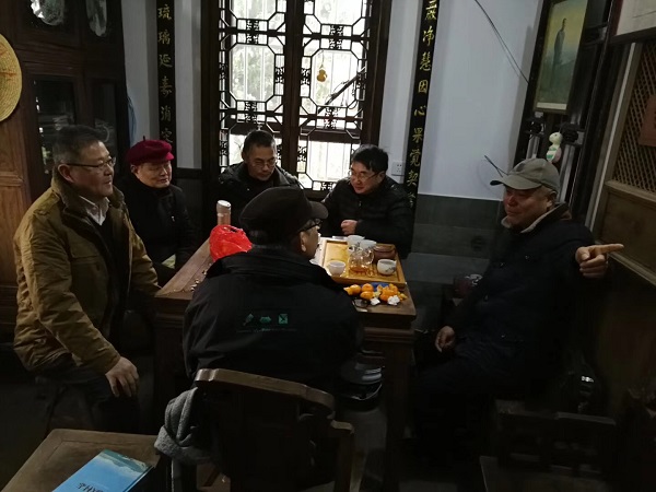 2019年1月13日 承秀州雅集,原班人马,部分有课题在手的会员1月13日在老干的诗社,位于干巷镇的旧宅,举办了一次交流活动。 话题涉及各自课题,老干主要介绍了自己的工作经历和计划完成的关于绿荷潭集镇的往事记忆。 本次活动大家商定,以后每个参加的成员轮流召集,内容,形式,时间和地点,由组织者设计。并商定下一次的雅集,由姚天云和姚连根两弟兄组织,地点在杉青港,故群名将次第改为:杉青港雅集。 本次的活动,老干安排了大家实地踏勘绿荷潭石桥和附近一些遗存和水系,干家(干祖望)老宅遗址,并讲述了他以前采访老人的一些故事。 老干准备在年内把这篇回忆文集写完。他说:除了他,没有其他人能写,或想到要写消失了的绿荷潭古镇,这是一份情结,也是一种责任。