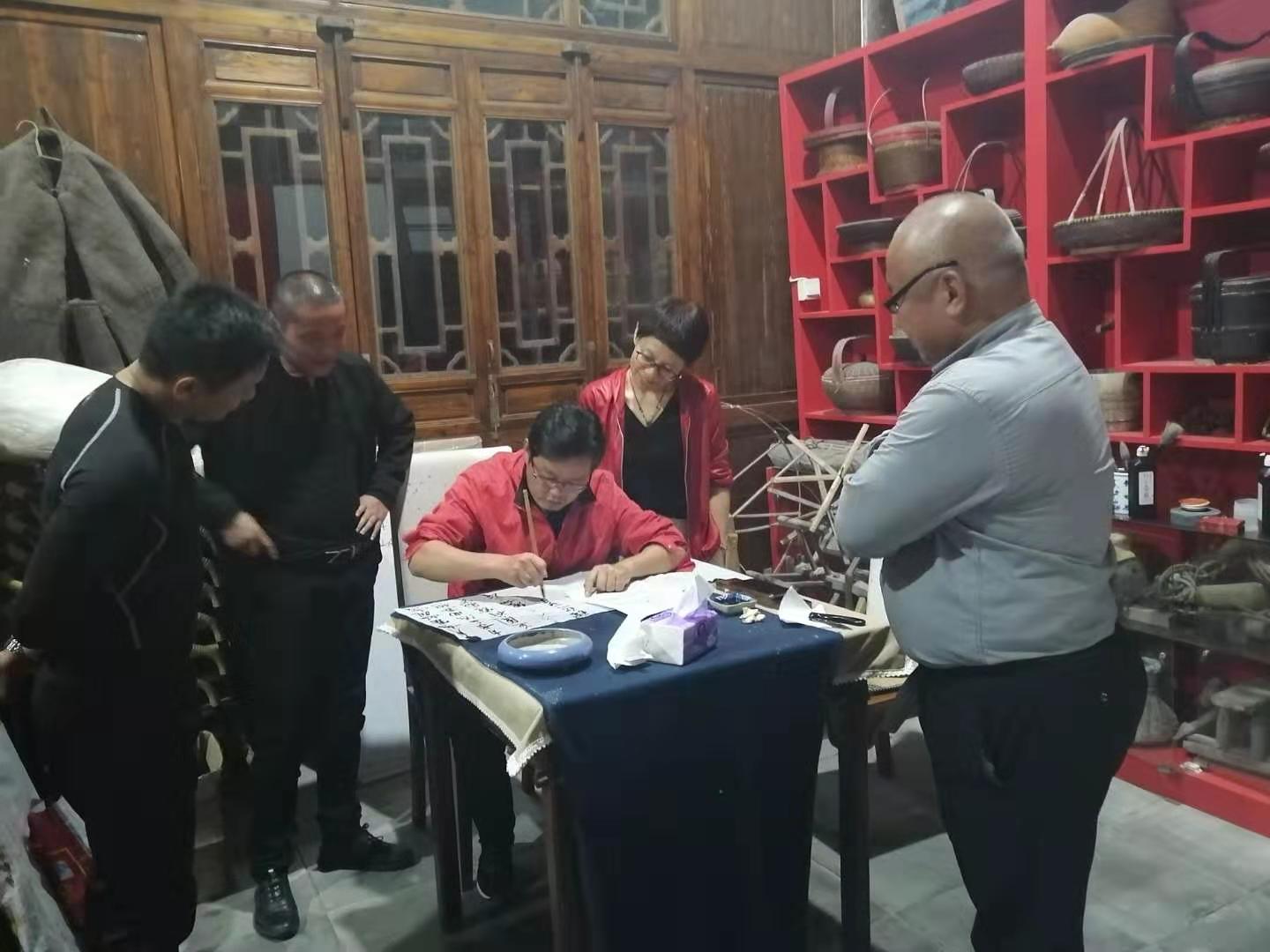 【山塘文史】11月 2 日,山塘苑举行雅集,部分会员观摩金山硬协闻毅敏先生等老师的书法创作。