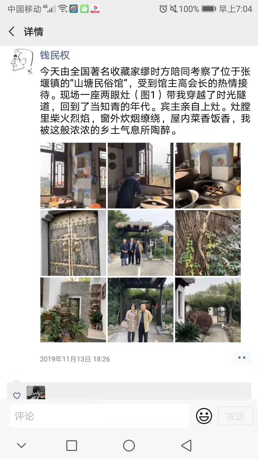 上海市著名收藏家,农具收藏的先辈,曾任上海市政府办公室农村事务办公室任职的钱民权老师和夫人,日前在缪时方老师陪同下,来到山塘苑和山塘文史农具馆仓库。对山塘苑的民俗用品陈列产生了浓厚兴趣,对山塘文史农具馆的筹备给予了高度的评价,并表示将不遗余力地推动山塘文史民俗馆和农具馆在金山的发展和筹建。