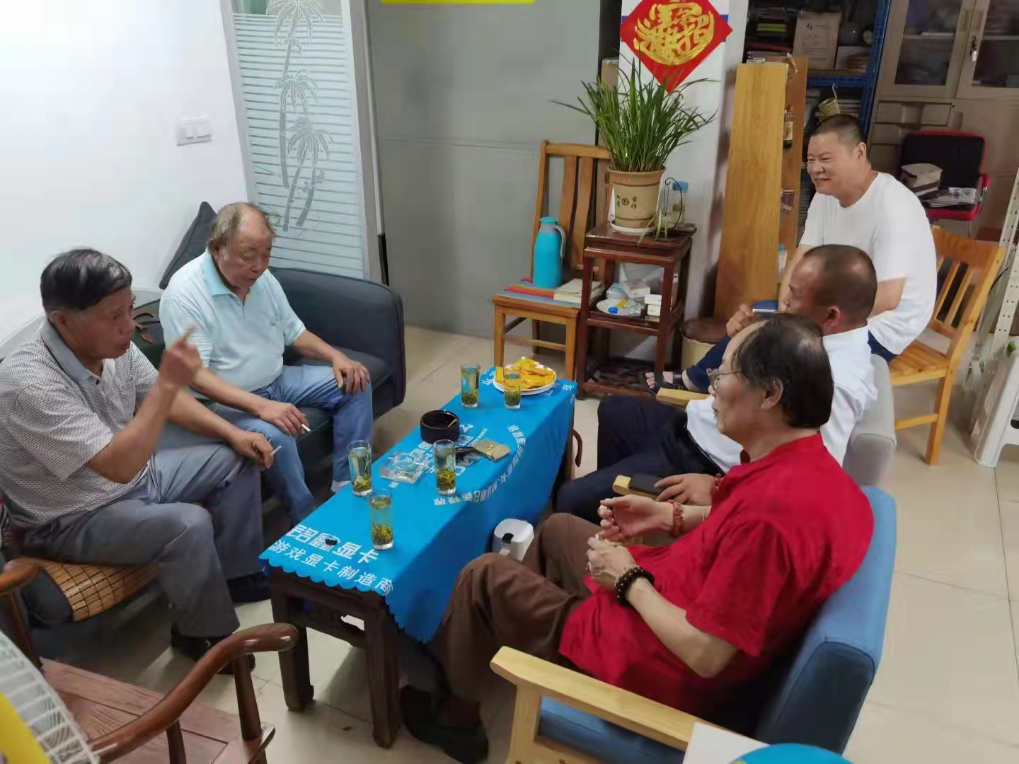 8月14日上午,《金山渔业志》主编杨金云在梁向东秘书长陪同下,来到了张堰君彦电脑店,与丁军,一关建平,沈国强等人一起交流。