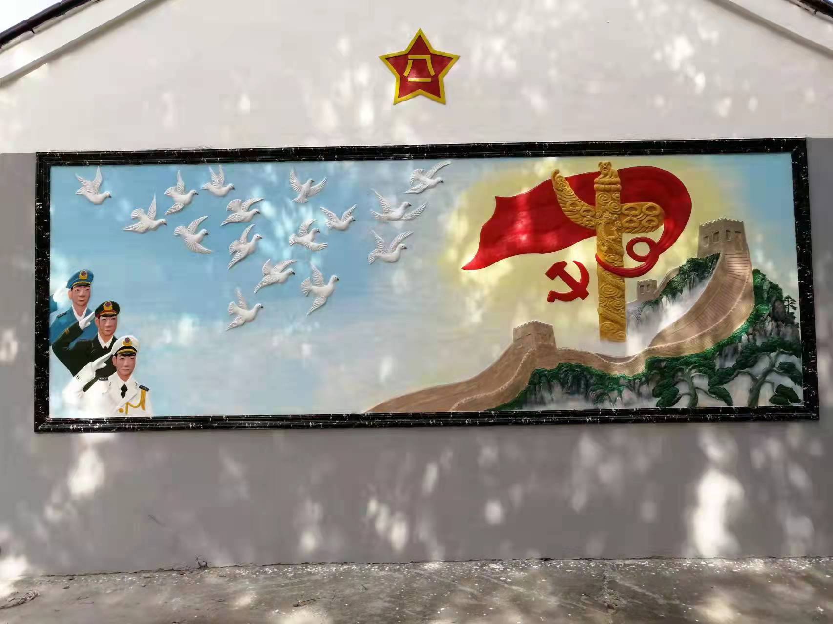 【山塘文史】会员,民间画师吴景权创作的二幅堆塑壁画,在位于秦
