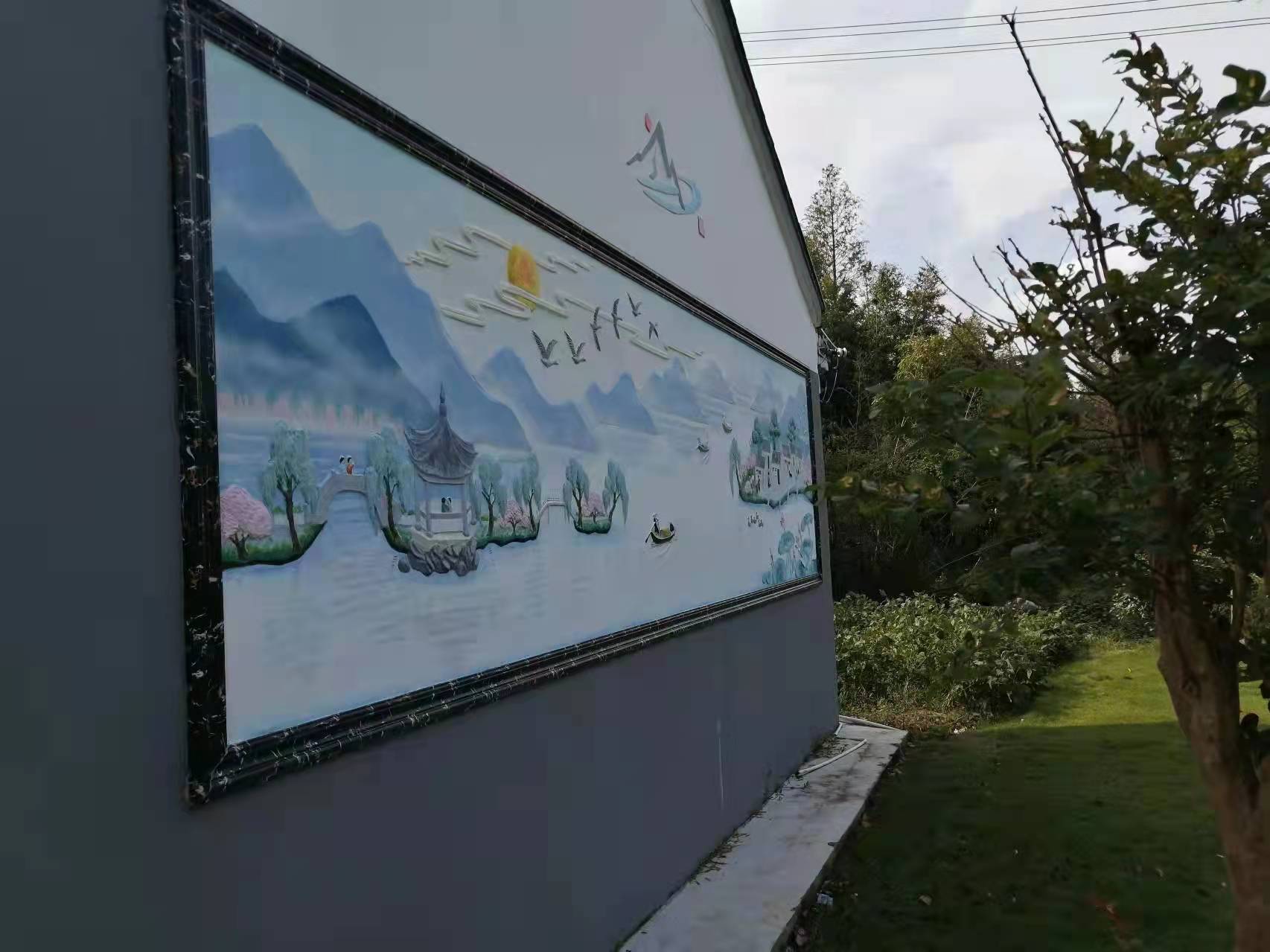 【山塘文史】会员,民间画师吴景权创作的二幅堆塑壁画,在位于秦山村的堰秦学堂完成,引观览者好评。