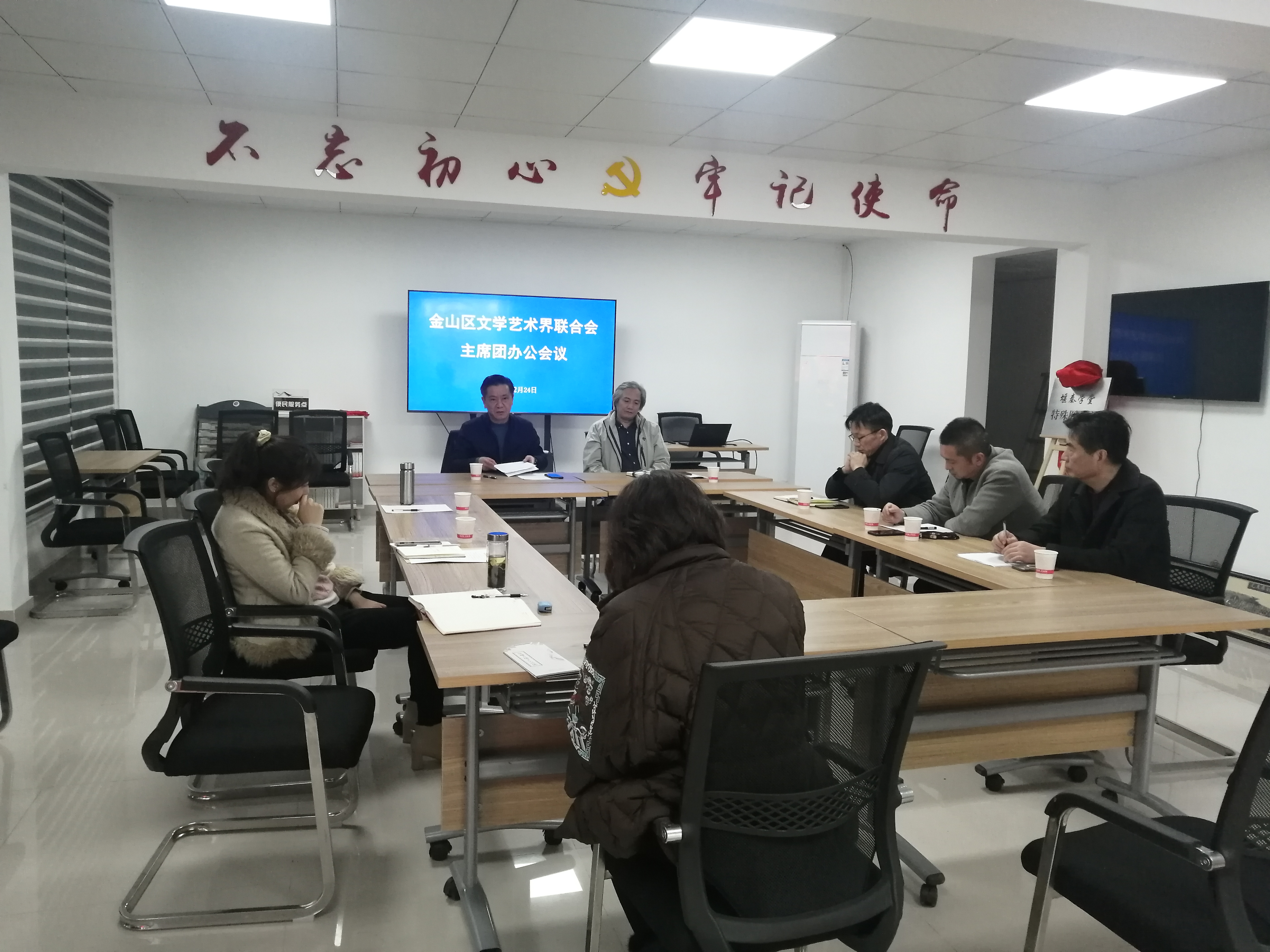 12月24日,区文联假座堰秦学堂召开主席工作会议,总结年度工作及布置新年工作计划,同时由文代会代表张洁明(书协主席,文联付主席)传达十一届文代会精神,区委宣传部付部长朱卫新领学文代会上习近平同志讲话精神。
