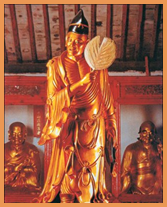 天台山罗汉道场的形成和发展,对我国文化艺术和风俗习惯产生了深远的影响。一些高僧为百姓做了好事,在世或身后被尊称为“活罗汉”、“罗汉再世”。如天台的济公就被看作“降龙罗汉”投生。少年济公成长在赭溪畔,读书于赤城山。由于受天台山“佛宗道源”和李府世代积善信佛家族文化的熏陶,潜移默化,萌生了方外之念。弱冠之年,皈依佛门,法号道济,先入国清寺。济公是降龙罗汉转世,降龙罗汉乃佛祖座下弟子,法力无边,助佛祖降龙伏妖,立下不少奇功。降龙修炼几百年,却始终不能得成正果,求教观音,得知七世尘缘未了,便下凡普渡众生,了结未了尘缘。断除一切烦恼,达到涅槃境界,不再受生死轮回之苦,修行圆满又具有引导众生向善的德行,堪受人天供养的圣者。当今世人的修行,心中都有一个目标积德行善只是修行的入道,以后的路长着呢。 全国各地丛林都奉天台罗汉为正宗。有的寺院还在罗汉阁上题匾称“天台来阁”。罗汉信仰还远传东瀛,宋代时一批批日本高僧入华,护照上就写着:“欲往天台山烧香供养罗汉一回。”他们在每位罗汉像前奉上一杯云雾茶,这就是“罗汉供茶”进入罗汉堂,自然不少了要数罗汉。人们随喜罗汉堂,都从自己迈进门槛的那只脚方向,逐一点数罗汉像,直到数足自己的岁数,那位罗汉就是自己的该年命相。据说年年数,年年自己的“本尊像”都不一样,实在是饶有趣味的一件事。天台距离金山有些远,不知道下一次数罗汉是什么时候…… 沿着霞客古道,翻山越岭,小心地走过只能容下一只脚的塌方段,来到康有为题词的高明寺,讨论着匾额上的某个字到底是双人旁还是绞丝旁,午间静静地将一碟碟素斋光盘,分明是一种别样的修行;听着浙江第一大钟祈祷幸福安康的悠扬钟声,联想到了塔头寺的风,国清寺的松,高明寺的钟……可我终归是俗人,所以毫无障碍地联想到了天台特有而最具特色的食品——饺饼筒,幻想着在林荫道悠闲地看云读诗听松涛。
