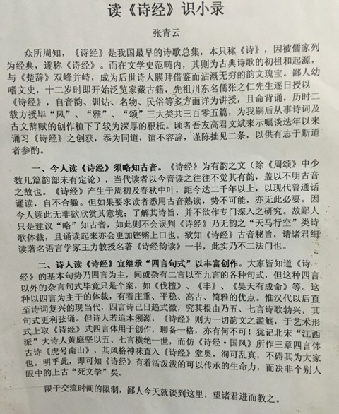附图是张青云老师的发言稿。经本人同意刊出 。
