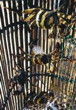 蟹簖材料倒也不考究,主要是芦苇、竹子、茅草,但形成规模,过程很繁琐。破竹劈环,扎3只直径约1公尺的圈,用芦苇结成莲子固定到圈上,靠底下开一个洞口,洞里端安装上用竹篾制作的倒须盖,保证螃蟹只进不出,然后用3根较坚实的竹子,分三只角,既作主心骨又作脚,均匀地扣住圈环,成了蟹簖。