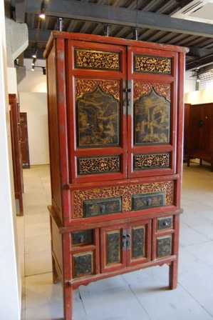 清代杉木雕花书柜